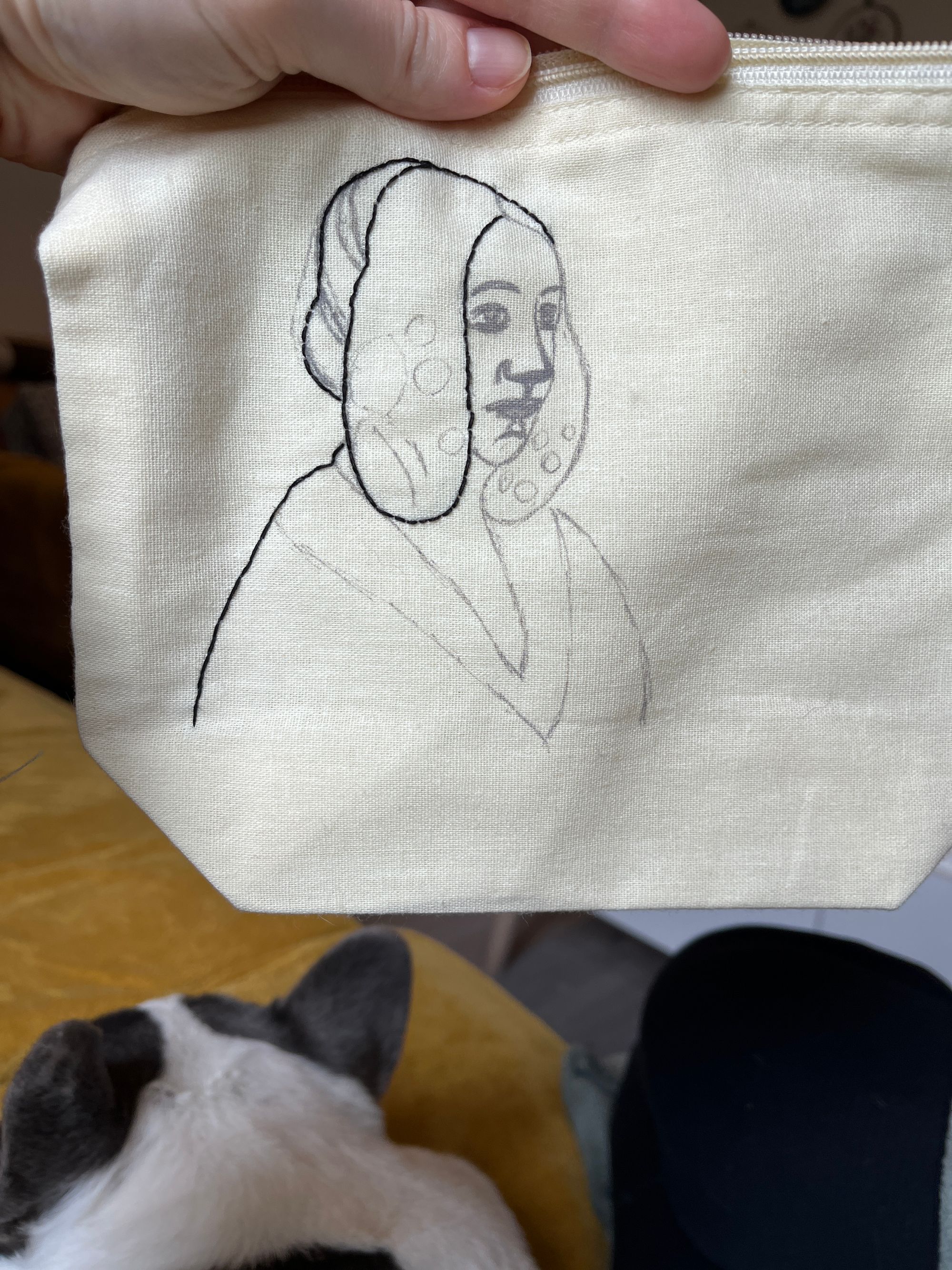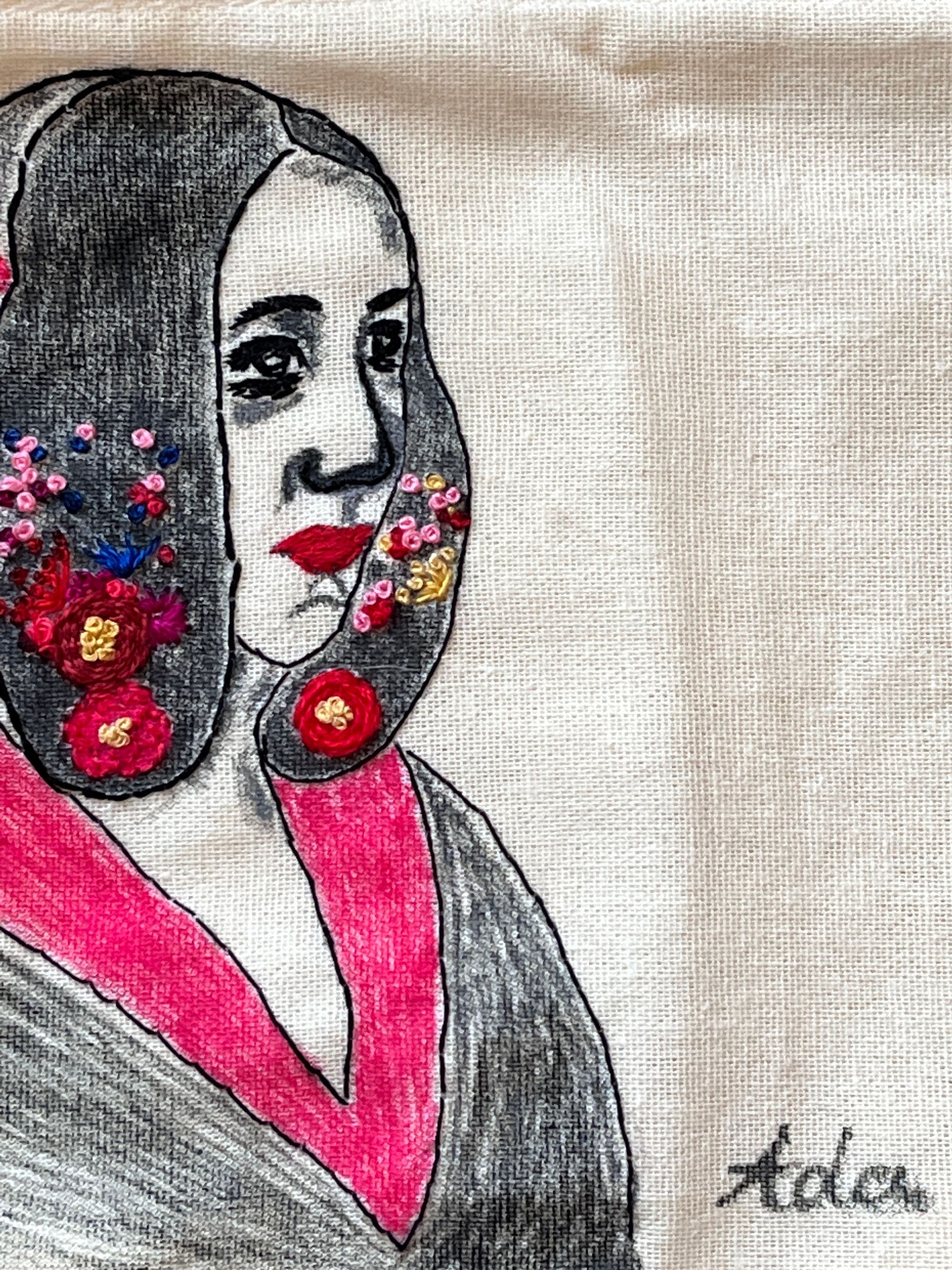 I decided to stitch her portrait basing my work on one of her later portraits. I wanted to showcase her as older, mature lady with a bit of sadness and seriousness in her eyes. I think women should be celebrated in all of their ages and not only when they are young, looking fresh and appealing.